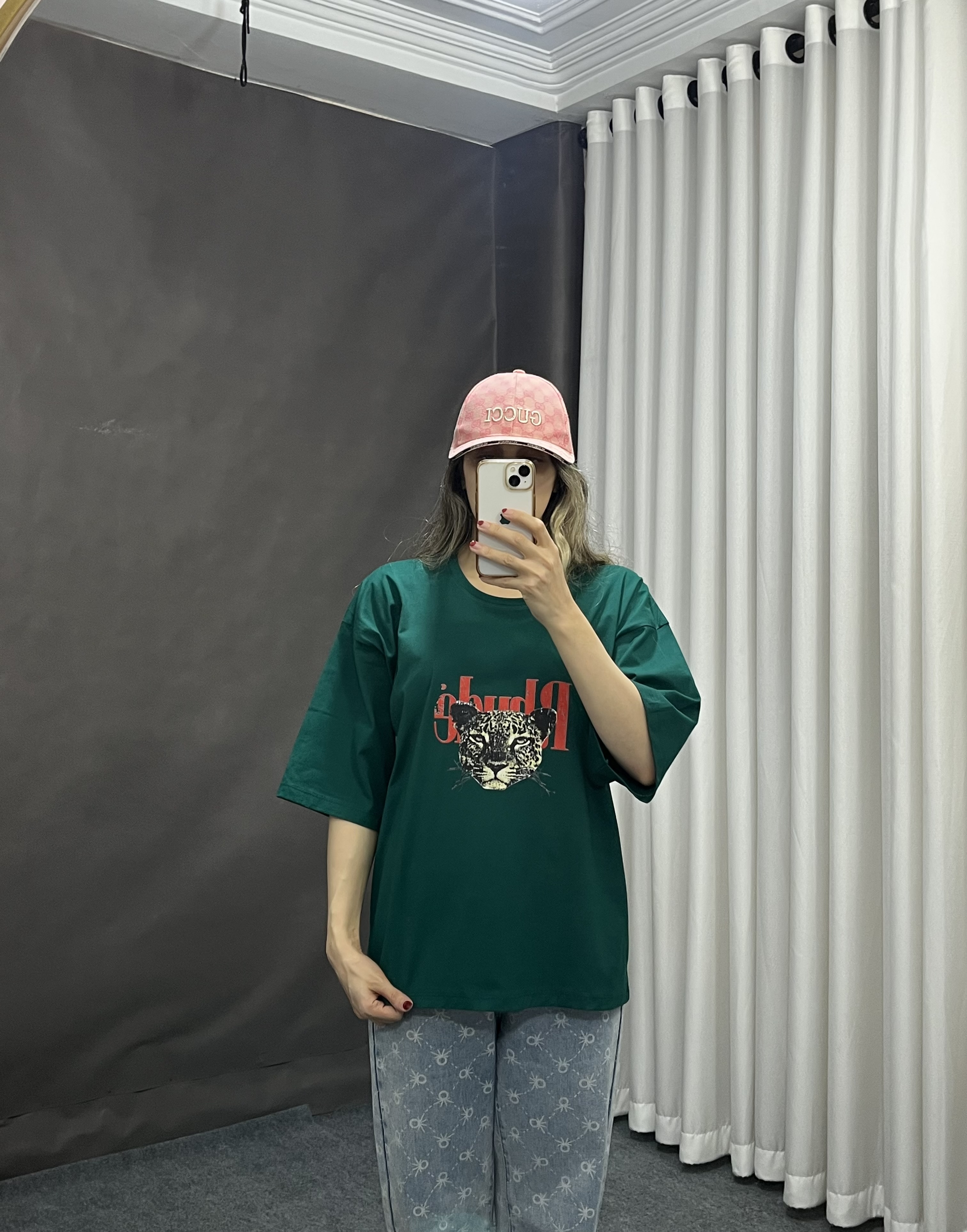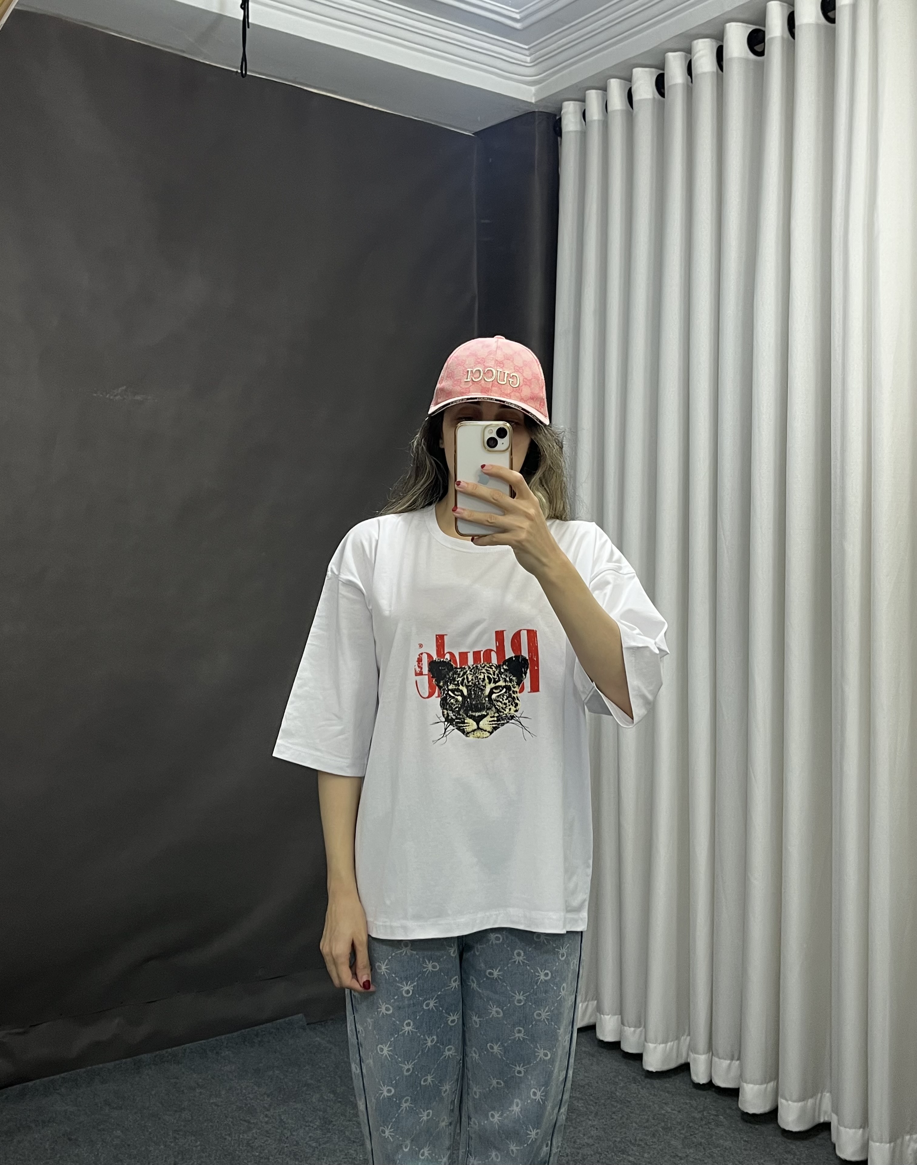 تیشرت پنبه باکسی اسپرت استین سه ربع ببر